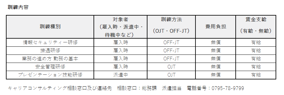 当社では、労働者派遣法に基づく労働者派遣事業(許可番号:派28-301514)を行っています。